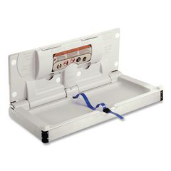 Global Industrial® Baby Changing Station features a clean, stainless steel design that is suitable for nearly all decors. The changing station is constructed of durable, high-density polyethylene with a brushed stainless steel shell. The heavy-duty steel hinge helps provide increased strength and support. The safety strap adjusts with one hand and is easy to sanitize. Built-in table liner dispenser for added convenience (liners sold separately). Bag hooks help keep personal belongings off the floor. Includes all necessary mounting hardware. 250 lb. static load capacity.
