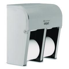 Attractive four-roll vertical coreless bathroom tissue dispensing system holds up to 6,000 two-ply or 12,000 one-ply sheets while maintaining a professional look. Rolls face forward to help minimize tabbing. Dependable roll advancing system provides users with continuous service. Coreless tissue reduces waste and frees up valuable space so there are no wrappers, no cores and fewer stub rolls to discard. Smaller case is easier to handle and fits storage closets better. Optional mounting brackets provide for easy installation and cleaning (sold separately).