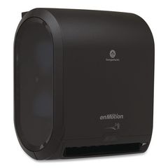 Towels Dispensers Type: Roll Towel Dispenser; Dispenser Capacity (text): One Roll; One Stub Roll; Material(s): Metal/Plastic; Color(s): Black.